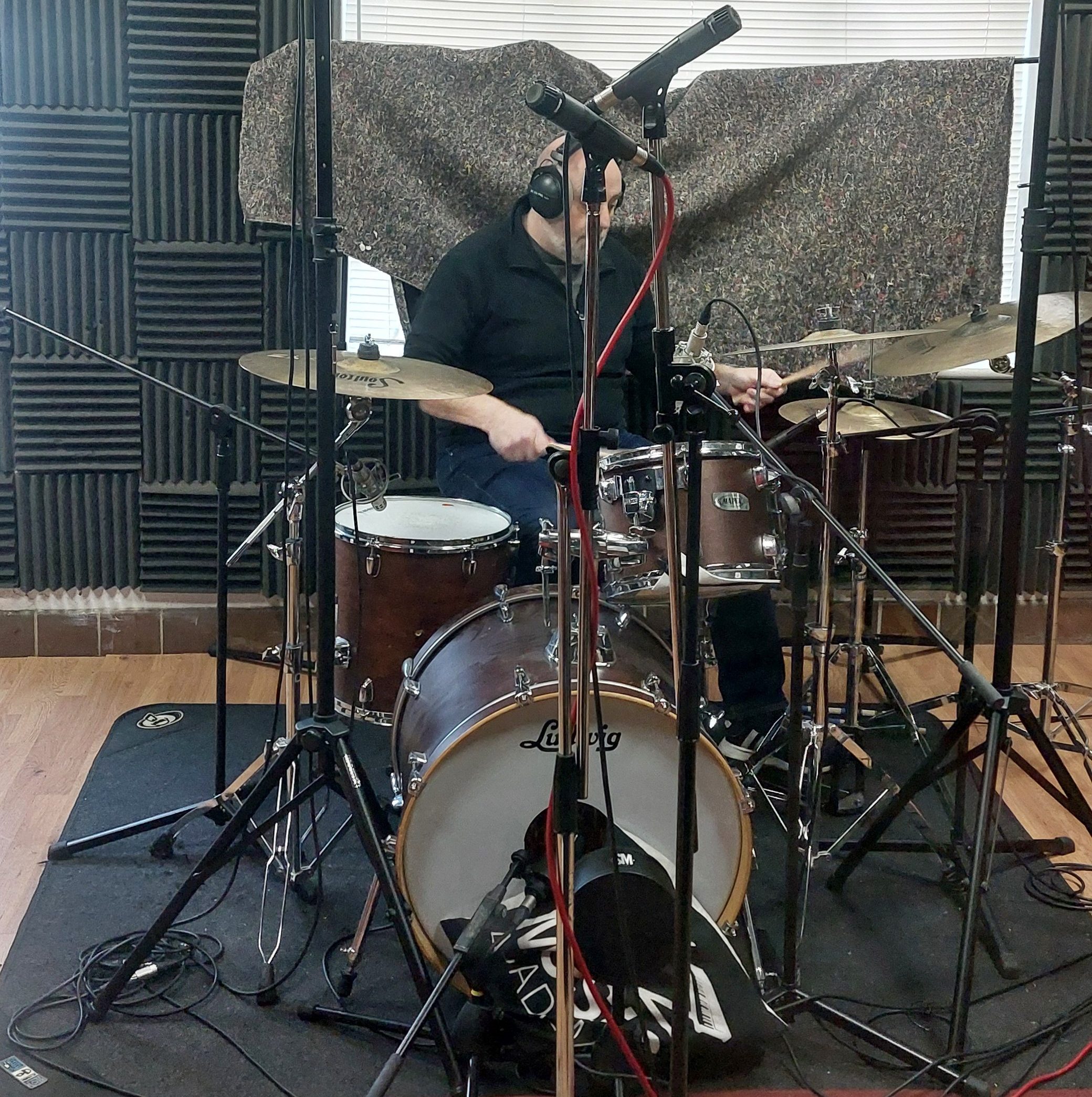 Back at XYZ Studios, with the superbly talented sound engineer Liam Knight, recording the drums and acoustic guitar for studio versions of 3 of our big songs from the live set. Look out for ‘I Know The Rules’, ‘I Don’t Want to Return Here’ and ‘On and On’ on Spotify over the summer!