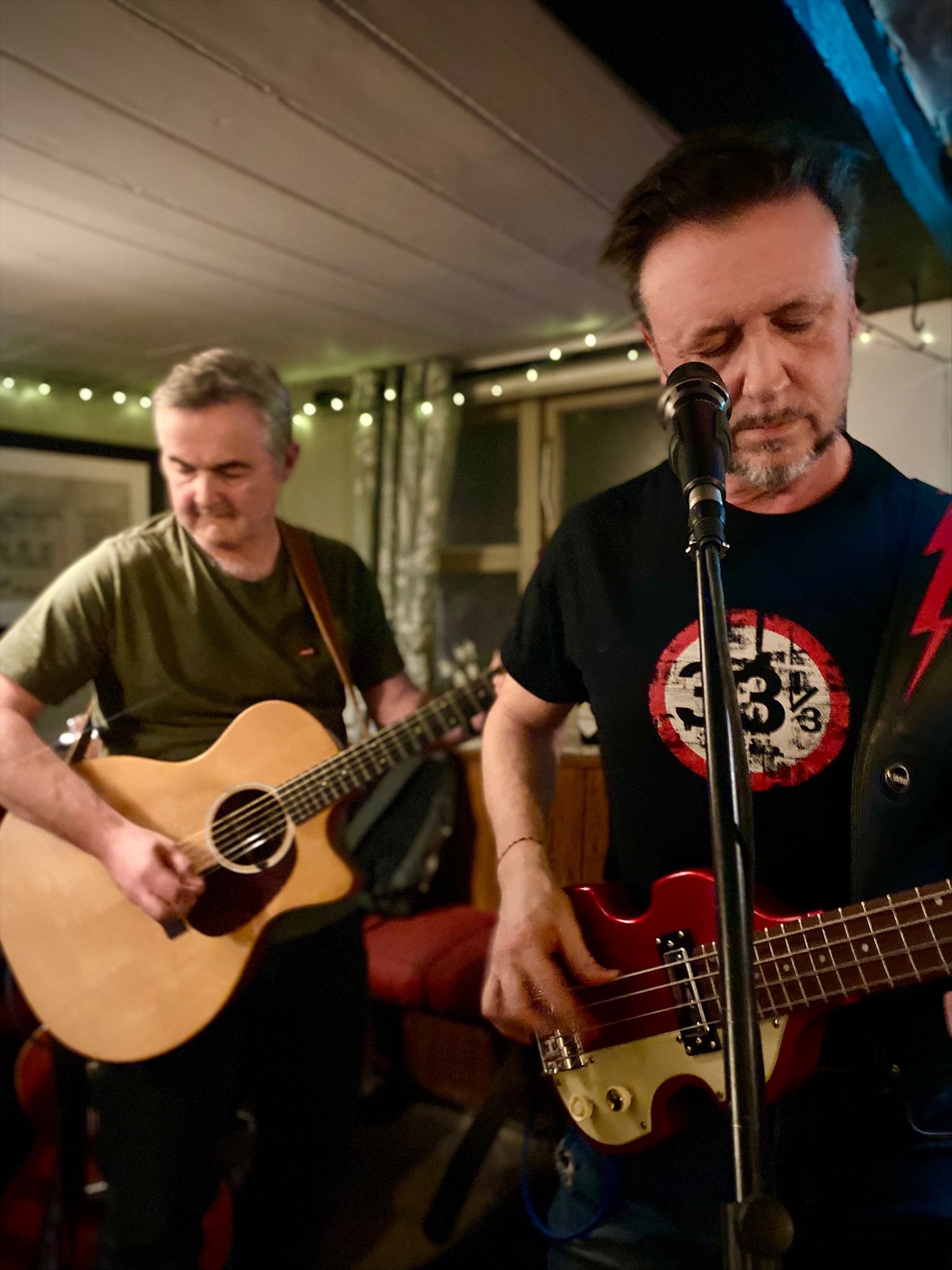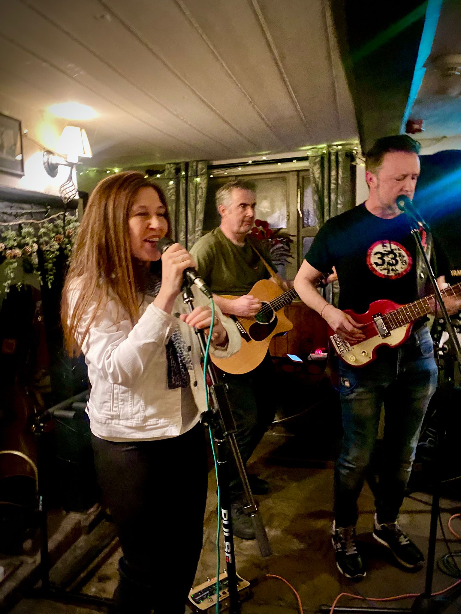 First outing of ’26 and the pleasure of playing a ‘featured artist’ slot at the Queens Head to celebrate 9 years of the Open Mic night run by the amazing Anna Swannell. We played a 9 song set of some of our lesser heard originals – Bite Your Tongue and Nothing’s Gonna Stop, together with Our Finest Song (original), Light the Blue (original), There She Goes, Sense, Can’t Get You Out Of My Head and World Shut Your Mouth – with plenty of sing along moments with the packed pub audience. Tony was out of action on the cajon, so thanks to the fabulous Mick Forster for stepping in!